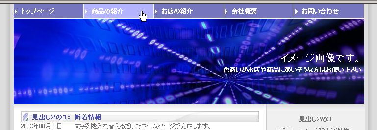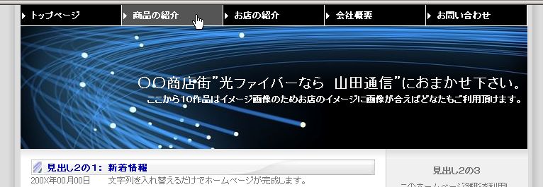 このページは、会社、団体などに適したホームページページです。 総アイテム数 約50個