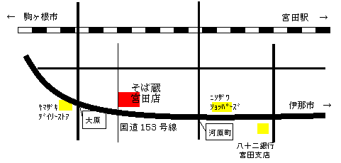 〒399-4301 長野県上伊那郡宮田村6350-1 長野県伊那谷宮田村 国道153号線沿い 中央自動車道伊那インターから車で15分、駒ヶ根インターから車で10分